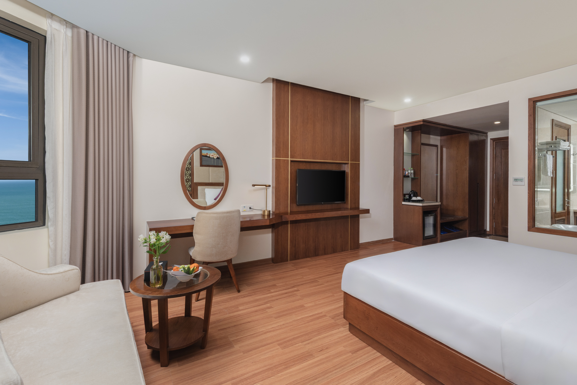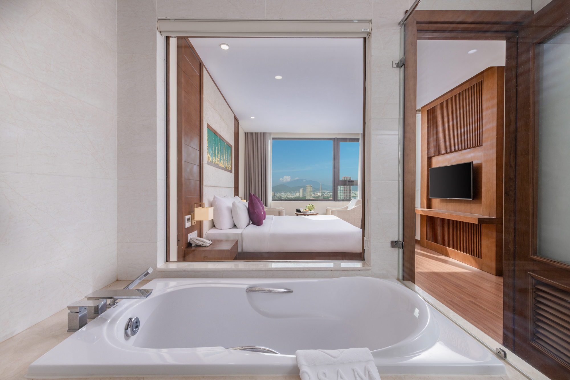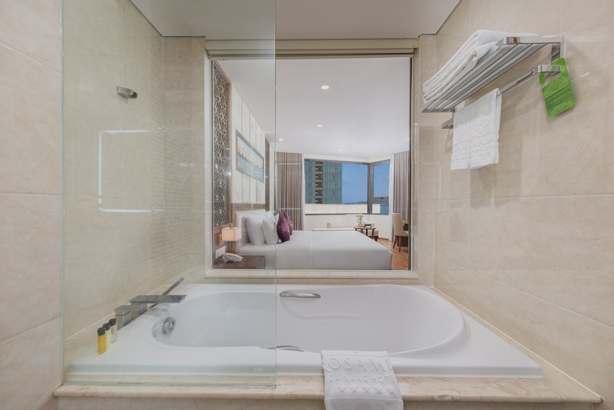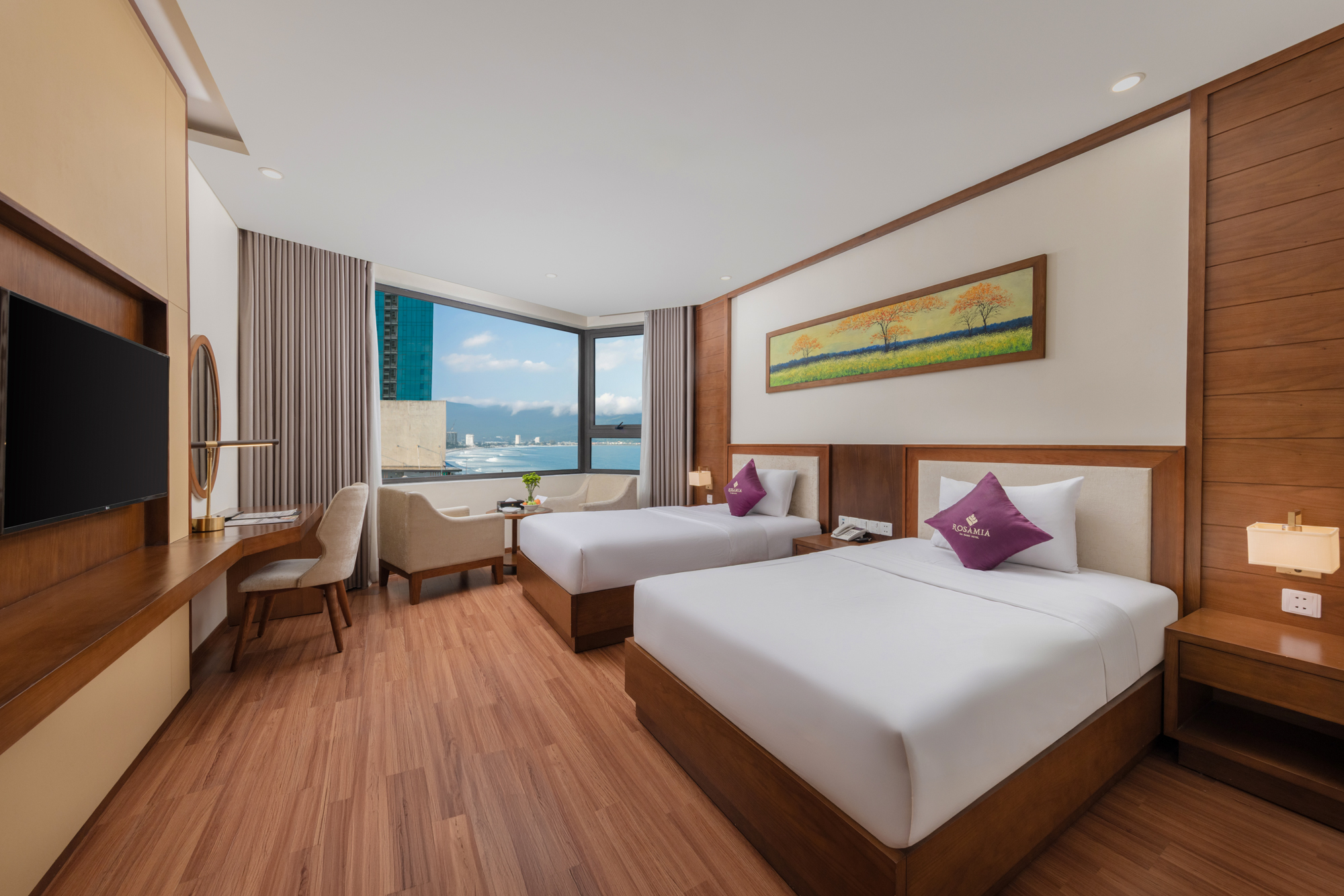 The Deluxe Ocean View room has a stunning view of My Khe Beach and Marble Mountain.