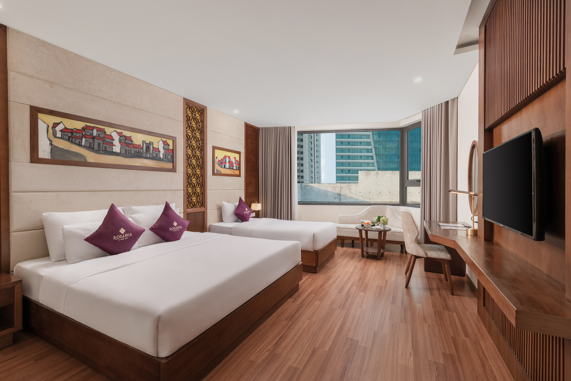 Tầm nhìn ra biển Mỹ Khê và bán đảo Sơn Trà với không gian mở, phòng Grand Deluxe Triple thật lý tưởng cho những gia đình vì sự tiện nghi, rộng rãi và thoải mái. Phòng lớn và đẹp với sàn bằng gỗ, nội thất cao cấp.