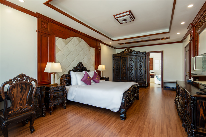 Phòng Presidential Suite bao gồm 1 phòng khách có sofa, 1 bếp và 3 phòng ngủ (2 phòng President Double hướng biển, giường Queen (1,8m×2m) và buồng tắm; 1 phòng Premier với giường Queen (1,8m×2m) và buồng tắm), ban công rộng hướng biển, sàn bằng gỗ…